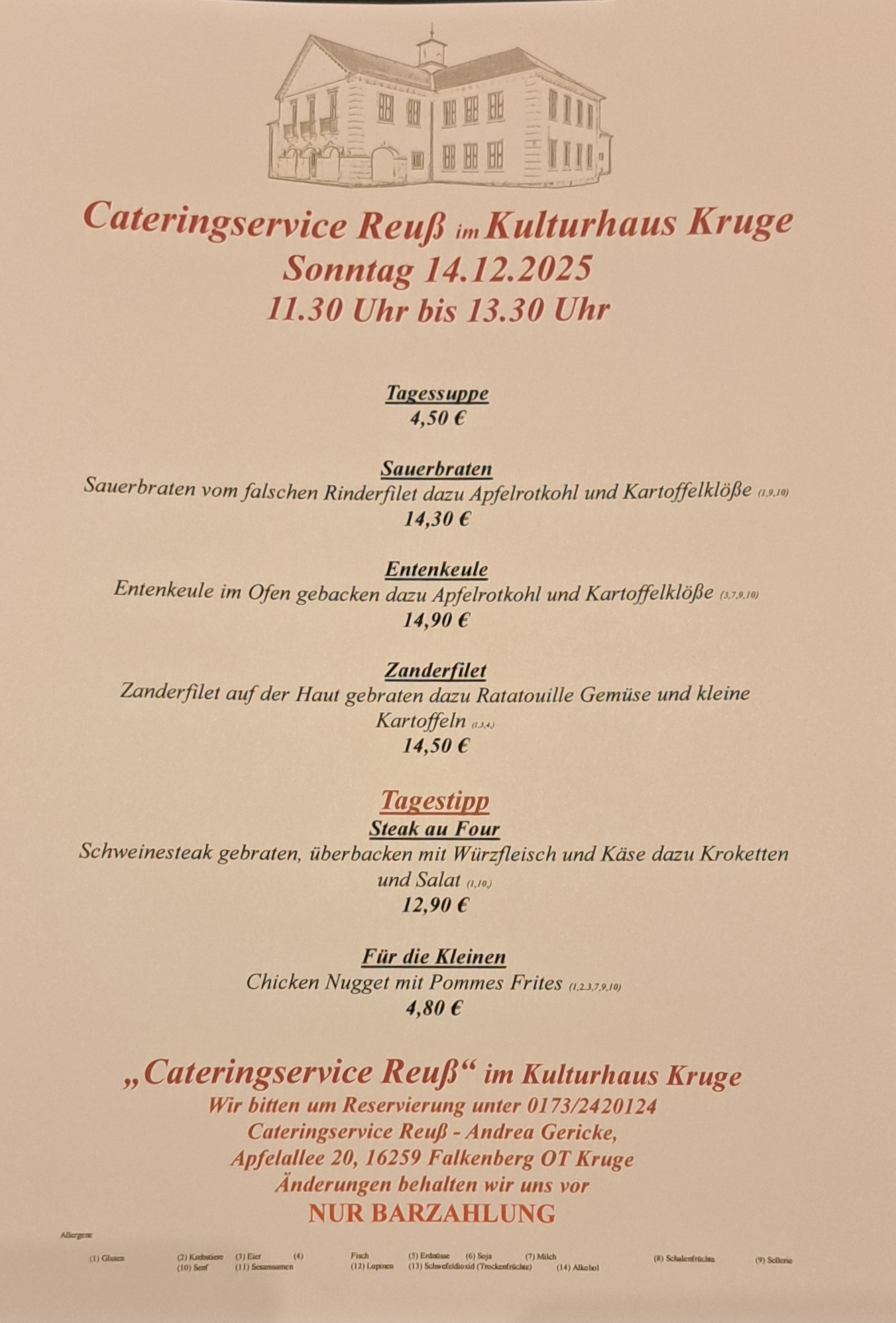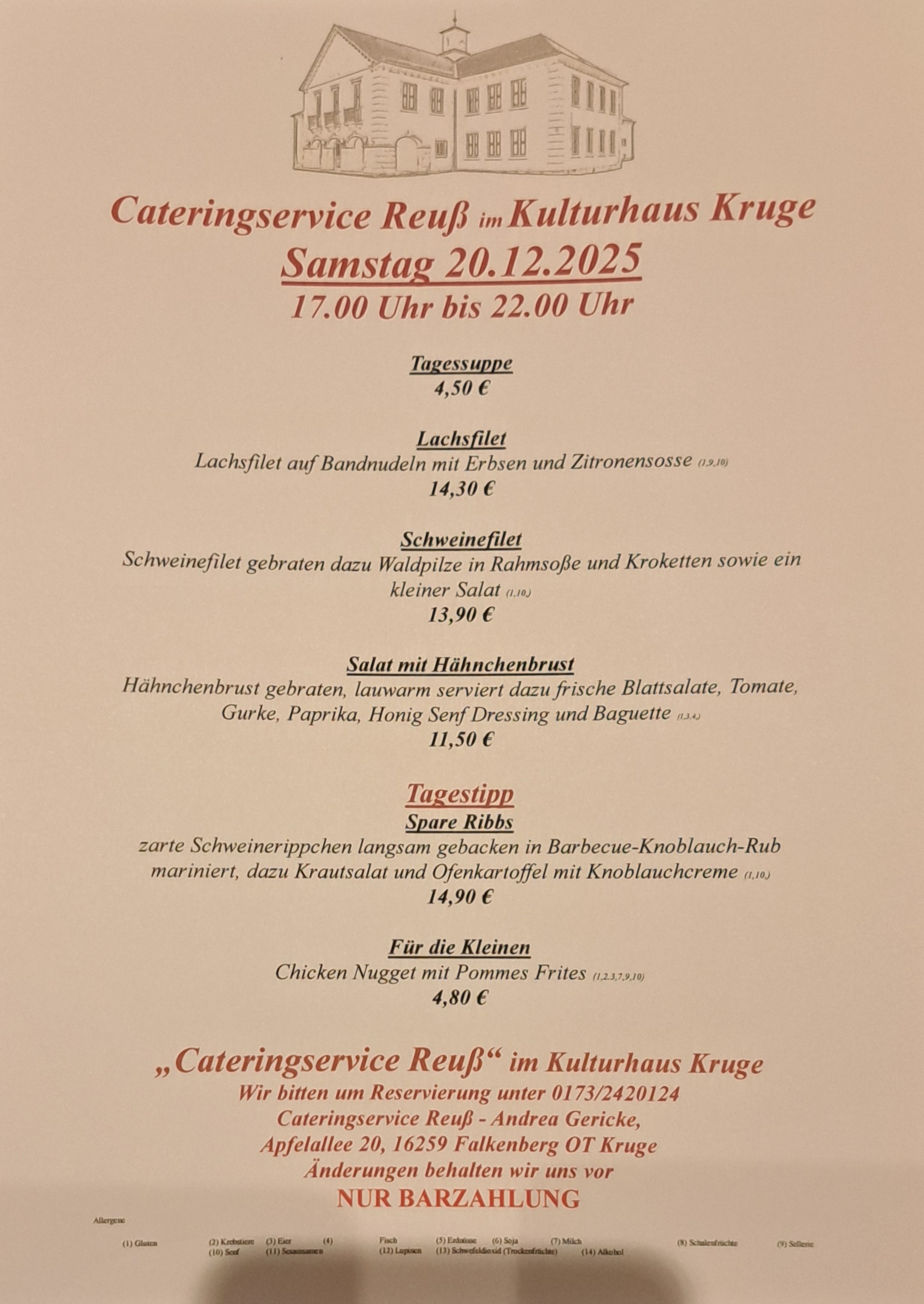 Am 30.11.25 ab 14 Uhr lädt der Cateringservice Reuß in Zusammenarbeit mit den Vereinen der Gemeinde zum "Anlichteln " am Kulturhaus Kruge ein.